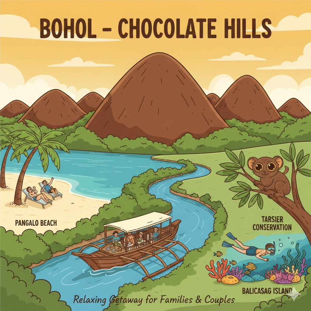 Bohol memberikan suasana yang lebih santai dan cocok untuk liburan keluarga maupun pasangan.